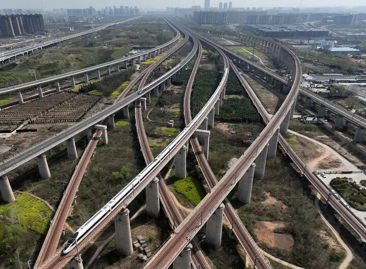 在河南省郑州市拍摄的长短不一的高铁廓清(无东谈主机像片)。新华社记者 李嘉南 摄