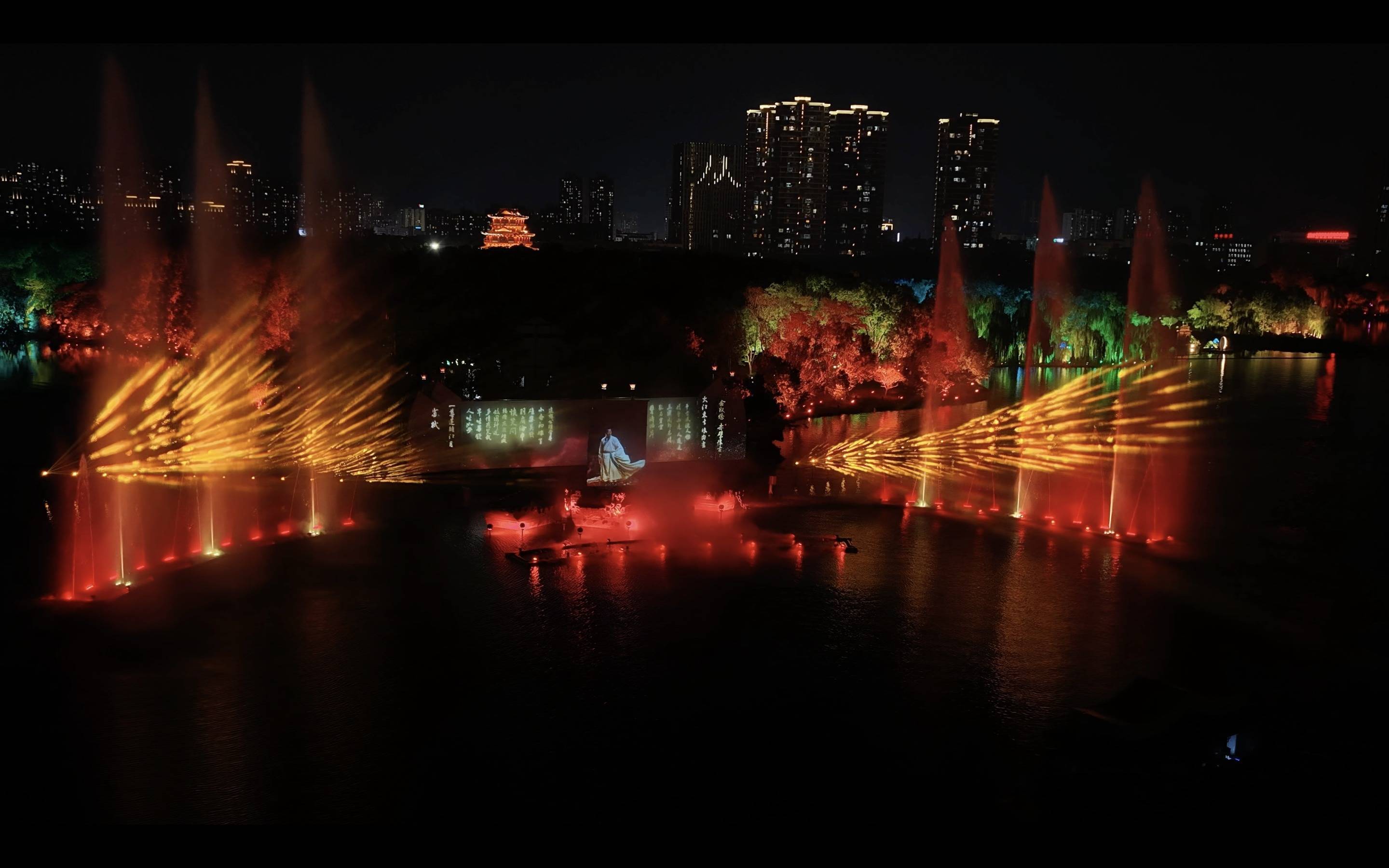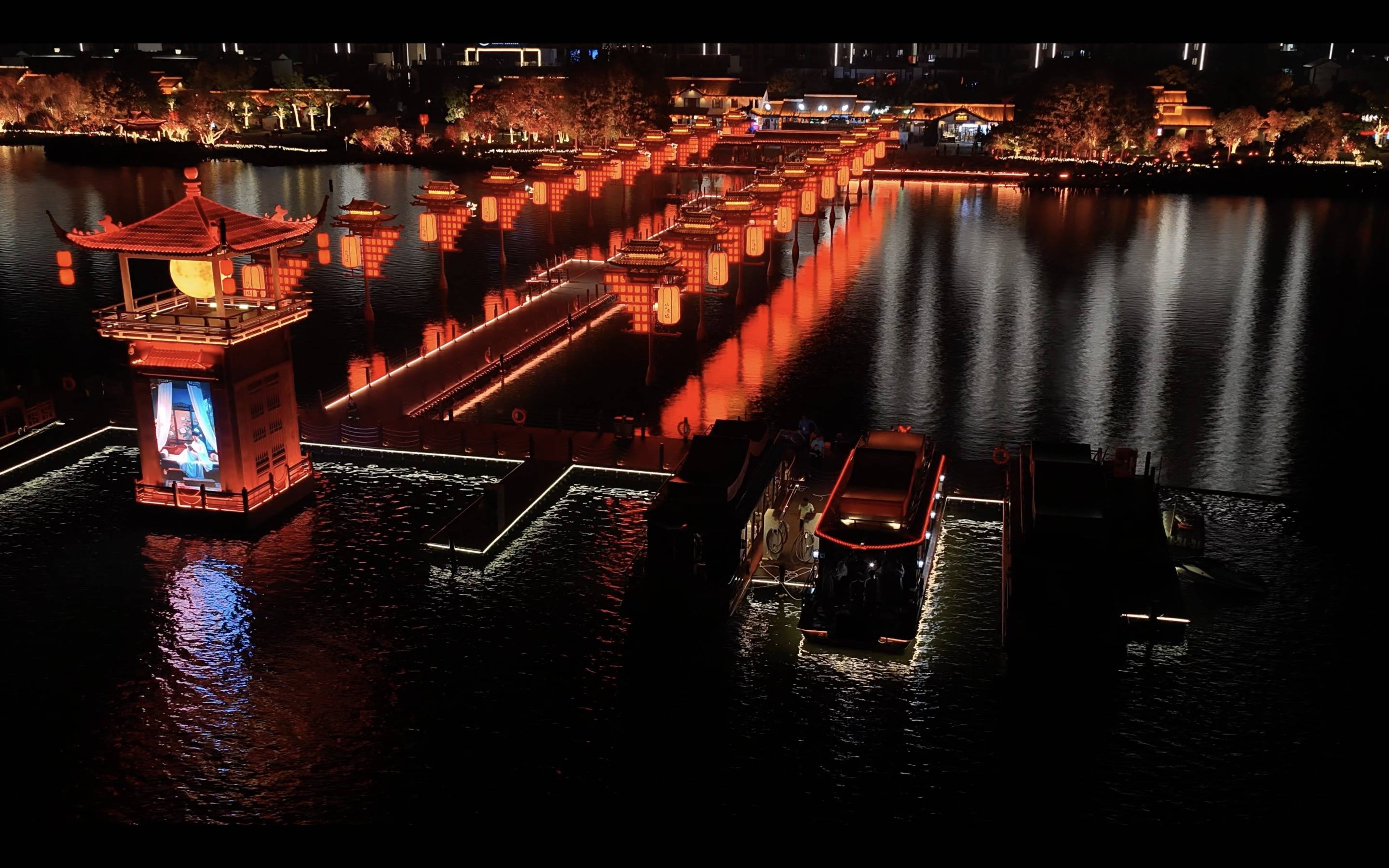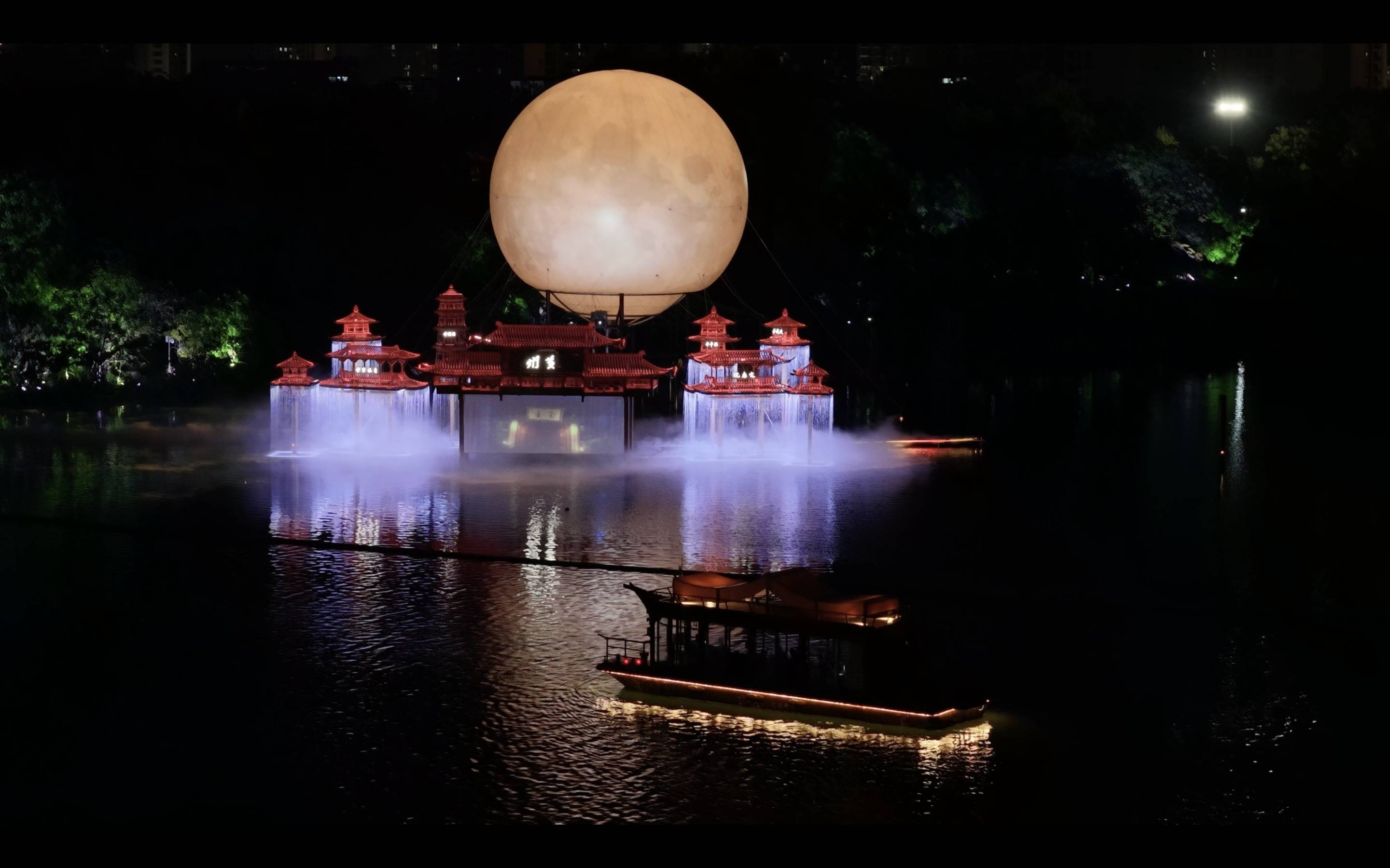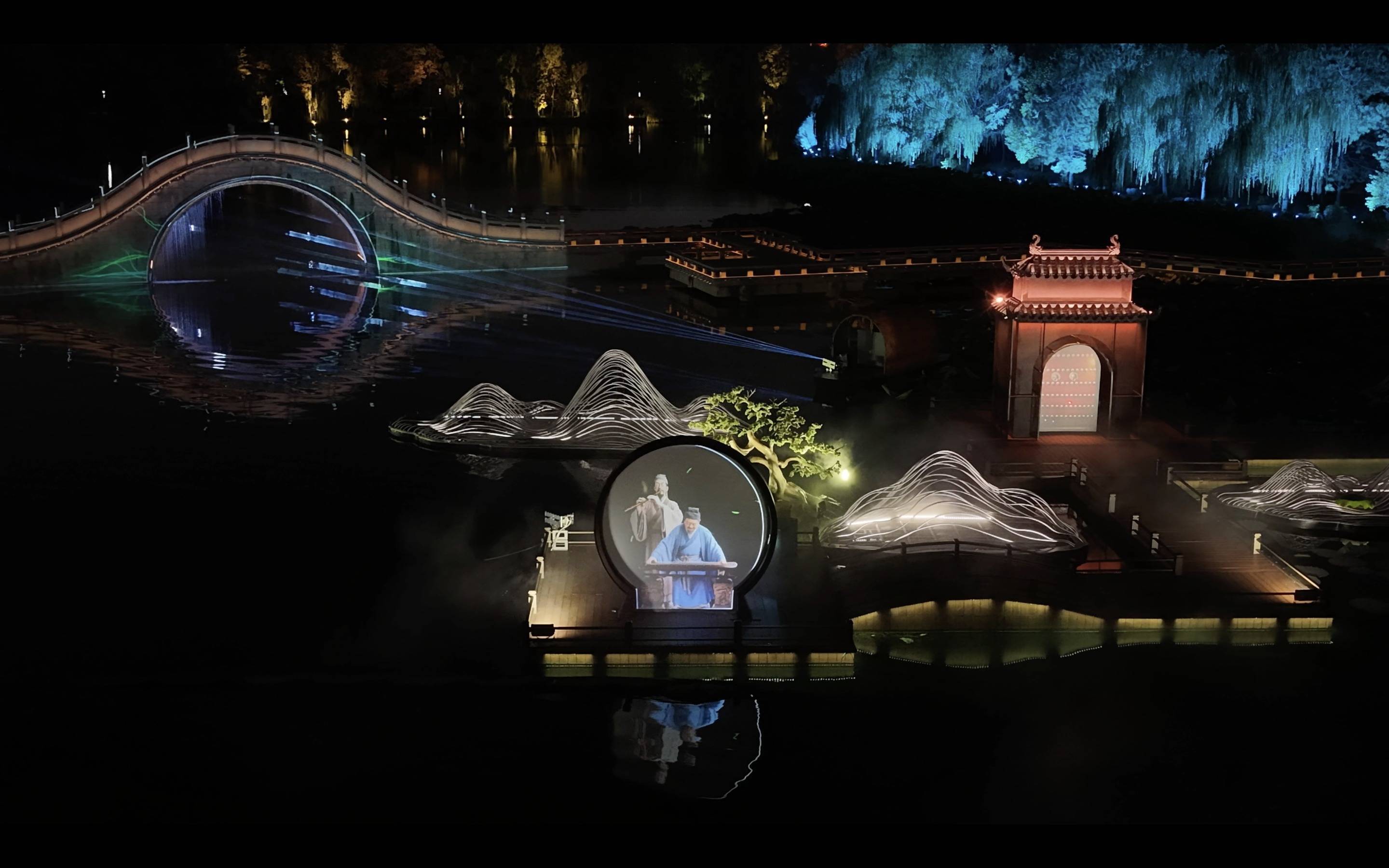 “夜游承天寺”场景则使用高亮度纱幕投影,在40 米长的水上光影浮台上规复“蟾光如水,竹影斑驳”的好意思学场景,旅客仿佛与苏轼、张怀民共赴那场千古夜游。